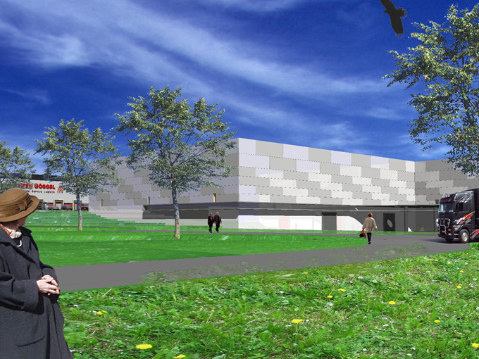 Es handelt sich hier um eine Lagerhalle für LKW- und PKW-Reifen. Die Halle hat eine Lagerfläche von ca. 7500 qm. Materialität und Formgebung orientieren sich an den vorhandenen Lagerhallen. Betonkonstruktion mit Fertigteilen für die Fassade. Die Fassadenteile sind unter- schiedlich strukturiert. Dadurch ergeben sich je nach Lichteinfall unterschiedliche Wirkungen.