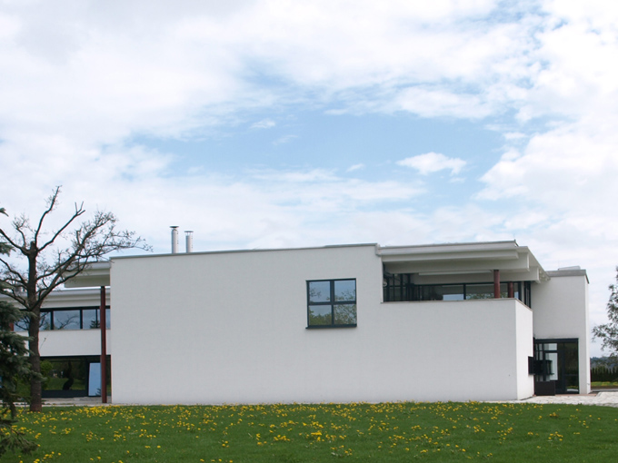 Dieses elegante Wohnhaus liegt am Rande der Albhochfläche. Verschiedene Terrassen und große Fenster ermöglichen einen über- wältigenden Ausblick auf die umgebene Landschaft.