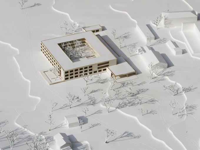 Mit dem neuen Senioren- zentrum Weissenau soll ein architektonisch, betrieblich und wirtschaftlich optimales Projekt für stationär betreute Menschen geschaf- fen werden. Integriert in das Haus ist auch eine spezielle Wohngruppe für demente Personen. Auf die besonderen Wohnbedürfnisse dieser Wohngruppe geht der Entwurf ganz besonders ein.
