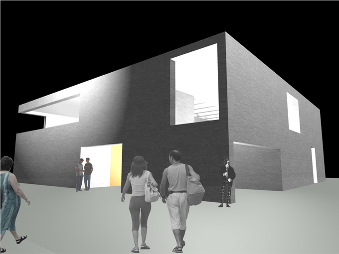 Wettbewerbsentwurf für die evangelishce Thomasgemeinde in Mannheim. Geplant wird der Neubau eines Gemeinde- zentrums mit Jugend- räumenals eigenständiger Baukörper mit einladendem, offenen Charakter